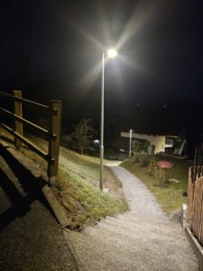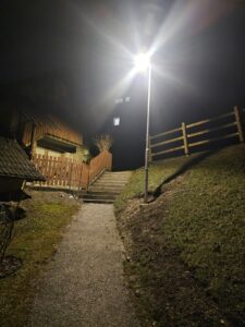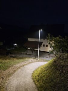 Tretja svetilka je bila postavljena v spodnjem delu Ljubnega pri domu Športnega društva Ljubno, na naslovu Ljubno 114. S tem smo dodatno poskrbeli za varnost obiskovalcev športnih prireditev, treningov in drugih dogodkov, ki potekajo na tem območju.