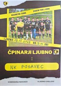 Krajevni nogometni derbi: ČPINARJI LJUBNO : NK POSAVEC Objavil Dejan dne 18. oktobra, 2025v šport Pred nami je prvi letošnji krajevni derbi v sezoni 2025/26. Letošnjo sezono sta naši nogometni ekipi začeli odlično. Lepo vabljeni navijači v čimvečjem številu! Več v objavi na Facebooku: https://www.facebook.com/share/p/14PrNTMcV3o/ Dejan Šparakl predsednik Krajevne skupnosti Ljubno šport