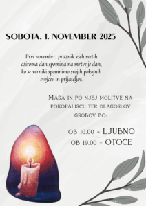1. november – Dan spomina na mrtve Objavil Dejan dne 30. oktobra, 2025v KS Dejan Šparakl predsednik Krajevne skupnosti Ljubno KS