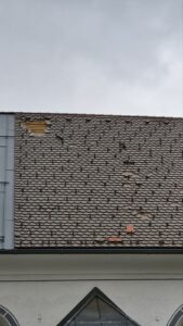 Sami mladi fantje in ena pogumna punca – Tilen, Erik, Teja in ekipa – ste danes res pokazali, kaj pomeni solidarnost in srčnost. Nenapovedano ste prišli k cerkvi in v dobri uri bliskovito ter predvsem pogumno popravili streho, kljub nevarnim razmeram.