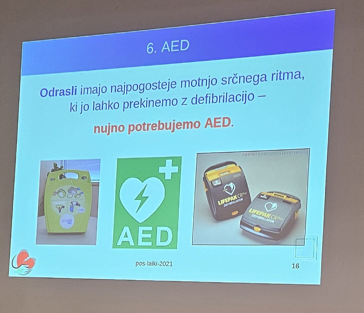 Z oživljanjem in uporabo AED lahko kot priče dogodka pričnete veliko hitreje kot ekipa nujne medicinske pomoči. Vsaka minuta, ko človeku v srčnem zastoju nihče ne pomaga, pomeni 10 % manj možnosti za preživetje.