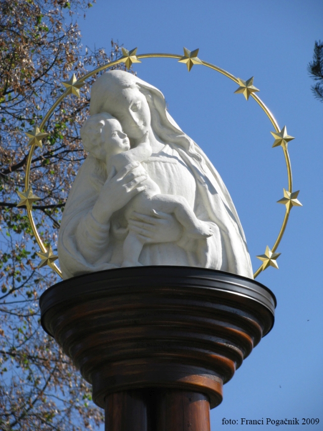postaje je bil na pobudo cerkve postavljen na visokem stebru kip breške Marije pomagaj z Jezusom delo kiparja Kalina. Ob otvoritvi je bil posnet tudi eden prvih filmov v Sloveniji. Po letu 1950 je bil za nekatere ta kip moteč, zato so ga odstranili. Leta 2009 je naš vaščan Franci Pogačnik zastavil vse sile in dosegel, da se je s pomočjo vaščanov Zaloš in Otoč replika kipa (original je nad stranskim vhodom Brezjanske bazilike) ponovno postavil na staro mesto.